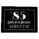 This Roaring '20s style inspired vintage look birthday gift bag design features a large art deco look inspired number "85", the message "Happy 85th Birthday,", a customisable name, and a border pattern consisting of thin lines. It also has a black-coloured background. A birthday themed gift bag like this might be used to wrap a gift or present being given to somebody who is celebrating their eighty fifth birthday. [~Z0000496]