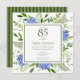 This blue hydrangea 85th birthday party/brunch invitation is whimsical and stunning! With its watercolor multi-hued blue hydrangeas, wispy natural greenery, and coordinating green striped back it is perfect for celebrating your wife, mum, sister, aunt, friend, grandmother, great grandmother. By selecting Personalise this template and typing in your information you can see your gorgeous invitations in seconds!