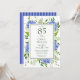 This blue hydrangea 85th Birthday invitation is perfect for celebrating your wife, mum, sister, aunt, friend, grandmother, great grandmother. It's lovely watercolor flowers, blue striped back, and clean type make it stunning, modern yet classic! It's super easy to make these invitations by selecting Personalise this template and typing in your information. In a flash you can see how gorgeous your invitations will be!