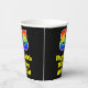 This exciting and fun birthday paper cup design features a large number “85” having a rainbow spectrum gradient inspired pattern. It also features the message “Happy 85th Birthday,”, and a customisable name. The background is coloured black. Colourful, vibrant paper cups like this might be fun to have at a birthday celebration being held to celebrate somebody’s eighty fifth birthday. [~Z0000537]