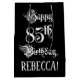 This opulent and formal birthday-themed giftbag design features the message “Happy 85th Birthday,” in elegant script style text, on a black coloured background. It also features a custom recipient name. A lavish birthday themed gift bag like this might be used when giving a gift or present in celebration of somebody’s eighty fifth birthday. [~Z0000557]