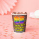 This vibrant and fun urban street art and graffiti inspired birthday paper cup design features a large number “85” having a colourful rainbow spectrum gradient inspired pattern. It also features the message “Happy 85th Birthday,”, and a customisable name. The background features a brick wall pattern. Colourful, vibrant paper cups like this might be fun to use at a birthday celebration/party being held to celebrate somebody’s eighty fifth birthday. [~Z0000543]