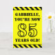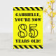 The front of this attention-grabbing and bold birthday themed greeting card design features a custom name and the message "YOU’RE NOW 85 YEARS OLD!" in black stencil style text on a yellow coloured background. There is also an eye-catching yellow and black stripes pattern at the top and bottom edges of the front. The inside features a customisable birthday greeting message, or could perhaps be cleared and left blank if a message is to be written by hand instead. A personalised birthday card like this might be a fun way to send birthday wishes to somebody who is celebrating their eighty fifth birthday. [~Z0000413]