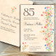 Celebrate a special 85th birthday with this elegant floral party invitation. Featuring soft watercolor wildflowers on a textured beige background, the design is fully editable with name, date, location, and RSVP info. A beautiful way to mark this joyful milestone. Enjoy!