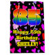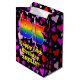 This joyful and cheerful birthday themed giftbag design features a large number “85” with a rainbow spectrum gradient inspired pattern, along with the message “Happy 85th Birthday,”, and an editable name. The background features a pattern of heart shapes with colours like purple, red, and pink. A gift-bag like this might be used when giving a gift or present in honour of somebody’s eighty fifth birthday. [~Z0000551]