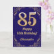 85th Birthday Navy Blue and Gold Glitter Frame. For further customisation, please click the "Customise it" button and use our design tool to modify this template.