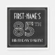 This stylish 1920s-1930s era inspired art deco style birthday paper napkin design has a personalised name, along with the message “85TH BIRTHDAY PARTY!”. The number “85TH” has a fancy geometric lined look. Elegant birthday themed paper napkins like these might be used at a birthday party for somebody who is celebrating their eighty-fifth birthday, or some other 85th event. [~Z0000659]