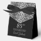 This elegant 85th Birthday Silver Leopard Print Thank You favor box with shimmering silver faux foil, the birthday girl's name in a trendy script font, and tied with an beautiful black bow would be perfect for your event. It would be great for a candy station, on a thank you gift table, or at each place setting with a favor. Be sure you order enough for all your guests.