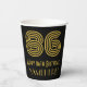 This 1920s-1930s style inspired and vintage look birthday themed paper cup design features a large art deco inspired appearance number “86”, plus the birthday greeting message “Happy 86th Birthday,” and an editable name. The background is coloured black. Birthday themed paper cups like this might be used at a birthday party celebrating somebody’s 86th birthday. [~Z0000546]
