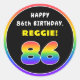 86th Birthday: Colourful Rainbow # 86, Custom Name Classic Round Sticker