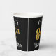 This ornate and luxurious birthday themed paper cup design features an editable name and the message “86th Birthday Party”. The large number “86th” has an imitation/faux gold-inspired colouring pattern, and the words “Birthday Party” are in fancy script-style text. The background is coloured black by default (although it can be customised). Opulent, fancy paper cups like this might be useful at a birthday celebration/party being held to celebrate somebody’s 86th birthday. [~Z0000567]