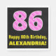 86th Birthday: Pink Stripes and Hearts "86" + Name Napkin