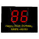 This silly and nerdy birthday gift bag design features a large number "86" with a red seven segment digital display inspired appearance, along with the message "Happy 86th Birthday," and a personalised name in geeky retro style yellow text, on a black coloured background. A customisable gift bag like this might be used when wrapping presents or gifts being given to somebody who is celebrating their eighty sixth birthday. [~Z0000389]