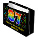 This fun, vibrant, and colourful birthday themed giftbag design features a large number "87" with a rainbow spectrum gradient inspired pattern, along with the message "Happy 87th Birthday,", and a customisable name. Part of the background has a pattern of various music notes and symbols having a variety of colours and sizes. A gift-bag like this might be a fun way of wrapping a birthday present or gift being given to a singer, a music composer, a musician, or somebody else who is celebrating their 87th birthday. [~Z0000425]