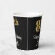 This luxurious, sophisticated, and stylish birthday-themed paper cup design features a large ordinal number “87th” having a faux/imitation gold-like appearance, along with the birthday greeting message “Happy 87th Birthday,” and a customisable name in a script-style font. The background is coloured black. Birthday themed paper cups like this might be a fun way to celebrate somebody’s eighty seventh birthday. [~Z0000538]