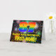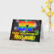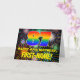The front of this joyful and vibrant birthday-themed greeting card design features a large number “87” having a multicolored rainbow spectrum inspired gradient pattern. It also features the message “HAPPY 87th BIRTHDAY,”, and a personalised recipient name. The background of the front features a fun, colourful, bursting celebratory fireworks-inspired pattern. The inside has a personalised birthday greeting message, or could perhaps be cleared and left blank if a message is to be written by hand instead. An upbeat, editable birthday greeting card like this might be used to celebrate somebody’s eighty-seventh birthday. [~Z0000619]