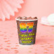 This exciting and fun urban graffiti and street art inspired birthday paper cup design features a large number “87” with a colourful rainbow spectrum gradient inspired pattern, along with the message “Happy 87th Birthday,”, and a customisable name. The background features a brick wall pattern. Colourful, vibrant paper cups like this might be fun to use at a birthday party being held to celebrate somebody’s eighty seventh birthday. [~Z0000543]