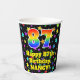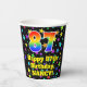 This exciting and joyful birthday paper cup design features a large number “87” having a rainbow spectrum gradient inspired pattern. It also features the message “Happy 87th Birthday,”, and an editable name. The background features a multicolored pattern featuring many star shapes with different colours and sizes. Colourful, vibrant paper cups like this might be fun to have at a birthday celebration/party being held to celebrate somebody’s 87th birthday. [~Z0000540]