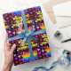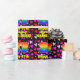 This joyful and cheerful birthday wrapping paper design features a large number “87” having a rainbow spectrum gradient inspired pattern. It also features the message “Happy 87th Birthday,”, and a personalised name. The background features a pattern of red, purple, and pink heart shapes. Wrapping paper like this might be used when giving a gift or present in honour of somebody’s eighty seventh birthday. [~Z0000549]