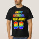 The front of this vibrant, cheerful, and fun birthday themed shirt design features a large number "88" and the message "HAPPY BIRTHDAY,", both coloured with a rainbow spectrum gradient inspired pattern, along with a bold yellow custom name. Cheerful and bold birthday-themed shirts like this might be worn by the attendees at a party being held in honour of somebody’s eighty eighth birthday. [~Z0000473]