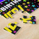 This fun and exciting birthday themed jigsaw puzzle design features a large number “88” with a multicolored rainbow spectrum inspired gradient pattern, along with the message “HAPPY 88th BIRTHDAY,”, and a custom recipient name. The background features an eye-catching, colourful star field pattern. A bold, editable birthday puzzle like this might be used to acknowledge somebody’s eighty-eighth birthday. [~Z0000607]