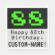 This nerdy and geeky birthday-themed paper napkin design features a large green vintage computer game style number "88" on a black coloured background. It also features the birthday greeting message "Happy 88th Birthday,", and a name that can be customised. Fun and geeky paper napkins like this might be used at a party being held to celebrate the 88th birthday of an engineer, a computer system administrator, or somebody who appreciates vintage video games. [~Z0000404]