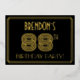 The front of this Roaring Twenties inspired eighty-eighth birthday celebration/party foil invitation features an editable name, a large art deco look inspired number “88TH”, the message “BIRTHDAY PARTY!”, and a border pattern consisting of lines. The background of the front is coloured black by default, but it can be customised to a different colour if desired. The back features personalised details about the event, such as the date, time, location, and any other information that may be relevant. Luxurious, elegant, personalised invitations like these might be used to invite guests to a birthday celebration being held to celebrate somebody’s 88th birthday. [~Z0000590]
