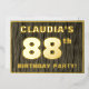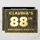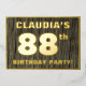 The front of this bold eighty-eighth birthday party foil invitation card features a personalised name, a large number “88th”, the message “BIRTHDAY PARTY!”, and a border, all in foil. There is a rustic, yet elegant, faux wood grain appearance inspired pattern for the background of the front. The back features personalised details about the event, such as the date, time, place, and any other information that may be relevant. Personalised invitations like these might be used to invite attendees/guests to a birthday gathering/party being held to honour somebody’s 88th birthday. [~Z0000598]