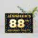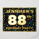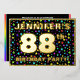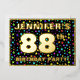 The front of this joyful and exciting eighty-eighth birthday party/celebration foil invitation card design features a customisable name, a large number “88th”, the message “BIRTHDAY PARTY!”, and a border. The background of the front features an upbeat, colourful stars pattern. The back features personalised details about the event, such as the date, time, venue, and any other relevant information. Editable invitations like these might be a fun way to invite guests/attendees to a birthday party/gathering being held in celebration of somebody’s 88th birthday. [~Z0000600]