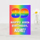 The front of this joyful and exciting birthday-themed greeting card design features a large number “89” having a rainbow spectrum inspired gradient pattern. It also features the message “HAPPY 89th BIRTHDAY,”, and a customisable name. The background of the front also has a fun multicolored rainbow spectrum gradient pattern. The inside has a custom birthday greeting message, or could perhaps be cleared and left blank if a message is to be written by hand instead. An upbeat, editable birthday greeting card like this might be a fun way to deliver a birthday greeting message to somebody who is celebrating their eighty-ninth birthday. [~Z0000570]