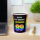 This cheerful and fun birthday themed paper cup design features the number “89“ with a vibrant rainbow spectrum inspired gradient pattern, along with the message “HAPPY 89th BIRTHDAY,”, and a customisable recipient name. Birthday themed paper cups like this might be a fun way to celebrate somebody’s eighty ninth birthday. [~Z0000639]