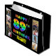 This upbeat and fun birthday-themed gift bag design features the message “HAPPY 89TH BIRTHDAY,“ with a multicolor rainbow spectrum inspired gradient pattern, along with a customisable recipient name. The photos to the left and the right of the rainbow-patterned message on the front of the card can be personalised, perhaps with photos of the recipient, the recipient’s family and friends, and/or the sender(s) of the gift. A birthday themed gift bag like this might be used when giving a present in celebration of somebody’s eighty-ninth birthday. (Photography © Storytree Studios, Stanford, CA.) [~Z0000668]