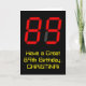 The front of this fun and nerdy birthday greeting card design features a large number "89" with a red seven segment digital display inspired appearance, along with the message "Have a Great 89th Birthday," and a personalized name, on a black colored background. The inside features a personalized birthday greeting message, or could perhaps be cleared and left blank if a message is to be written by hand instead. A personalized birthday card like this might be a fun way to send a message in celebration of somebody’s eighty ninth birthday. [~Z0000386]