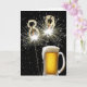 Party sparklers with gold confetti and a mug of beer for 89th birthday.