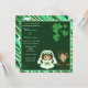 Cute, square wedding invitations of an 8-bit bride, and groom, against a dark green background. In the corners are light green clovers, and little stars.The border of the card is a pattern of horizontal stripes. Very simple, cutesy, geeky, and Irish. Great for gamers, or anyone looking for something Irish, or St. Patrick's Day themed. If you're searching for wedding invites that look cute, colourful, nerdy, or lucky, then this might be what you're looking for. These cards are customisable, so you can personalise these. Add or delete text and images to fit your tastes. Check out my shop, Saradaboru, for more unique patterns, illustrations, and designs on a variety of different products.