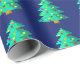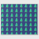 8 bit Green Christmas tree with blue background Wrapping Paper