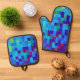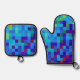 8-bit Pixel Pattern Abstract Cool Geeky Blue Red Oven Mitt & Pot Holder Set
