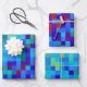 8-bit Pixel Pattern Abstract Cool Geeky Blue Red Wrapping Paper Sheet