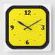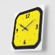 Custom wall clock for old-school computer geeks with 8-bit video game arcade style pixels clock face. The yellow background can be changed to any other colour.