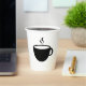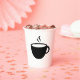 8 oz white paper cup designed with a cup of hot coffee on it