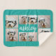 8 Photo Collage and Handwritten Name blue Sherpa Blanket