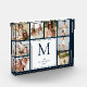Pretty navy blue family photo monogram inital and family name photo block. This photo collage design has room for 8 special photos. Sure to make a memorable gift.