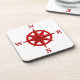 Coasters in an 8-point compass rose design with a slight raised, 3-d effect - deep red on a white background
