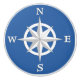 Knob in an 8-point compass rose design with a slight raised, 3-d effect - white on a cobalt blue background