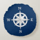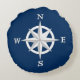 8-Point Compass Rose, White and Navy Blue Round Cushion