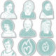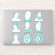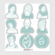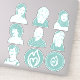 8" Sheet of turquoise stickers of seven characters and two kindle.