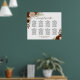 This beautiful 8 table wedding seating chart features a rustic hand painted watercolor design with coral peach, rust orange and burnt umber coloured roses surrounded by sprigs of eucalyptus leaves and autumn garden foliage. The traditional layout has space for 80 guests with 10 seats per table, with a script calligraphy title and space for the names of the couple and wedding date below. Wonderful way to add style and class to your wedding reception while making it easy for your guests to find their assigned seats.