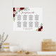 This beautiful 8 table wedding seating chart has space for 80 guests with 10 seats per table. The rustic hand painted watercolor design features burgundy, red, and blush pink roses surrounded by sprigs of eucalyptus leaves and garden greenery. The title is printed in elegant script calligraphy and there is space for the names of the couple and wedding date below. Wonderful way to add elegance, style and class to your wedding reception while making it easy for your guests to find their seats.