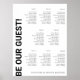 This customisable simple elegant 8 table wedding seating chart template will be a great addition to Wedding party decor. It features Be our guest written in bold black letters against white background. Text is fully editable, to make advanced changes, please select "Click to customise further" option under Personalise this template. Matching Wedding enclosure card, RSVP card and day-off stationery is also available, check out "Black and white Bold letters wedding stationery and decor" collection in my store Wowweds.