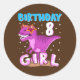 8 Years Old 8th Birthday Girl Dinosaur T Rex Classic Round Sticker